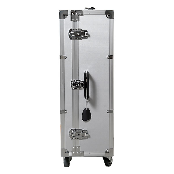 0.3mmのエンボスアルミ素材に合板5.5mmを張り合わせ堅牢なフレームで固めたエンボスアルミケースです。 弊社のエンボスアルミケースは、0.3mmのエンボスアルミ素材に5.5mmの合板を張り合わせ堅牢なフレームとリベットの数で強度をあげております。 蝶番、錠前、フレーム、角金など強度の高い部材を使用しており、収納物をより安全に保管/運搬致します。 標準タイプの内装はメルトンと呼ばれる起毛状の布を貼っており、収納物とアルミとの摩擦を防いでおります。 ※特注にてウレタン内装等お選び頂けます。 アルミ+合板仕様では木ネジが使用出来るので精密機器の組込みなど様々な用途でお使い頂けます。